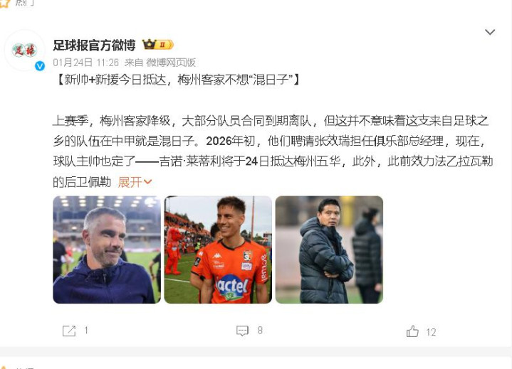 很多人说球队在放大招,总经理邀请的是中国技术流中场代表张效瑞,当年他在中国足坛用大杀四方,中场发动机来说一点也不为过,如今从球员转为总经理,他的优势十分明显,那就是懂足球,懂球员,更懂中国足球的潜规则。梅州客家作为中超“经济型球队”代表,近年受限于资金投入,始终在保级边缘徘徊。张效瑞上任后,如何平衡“省钱”与“争胜”?是继续“小本经营”中甲混,还是冒险引入强援冲击中超?